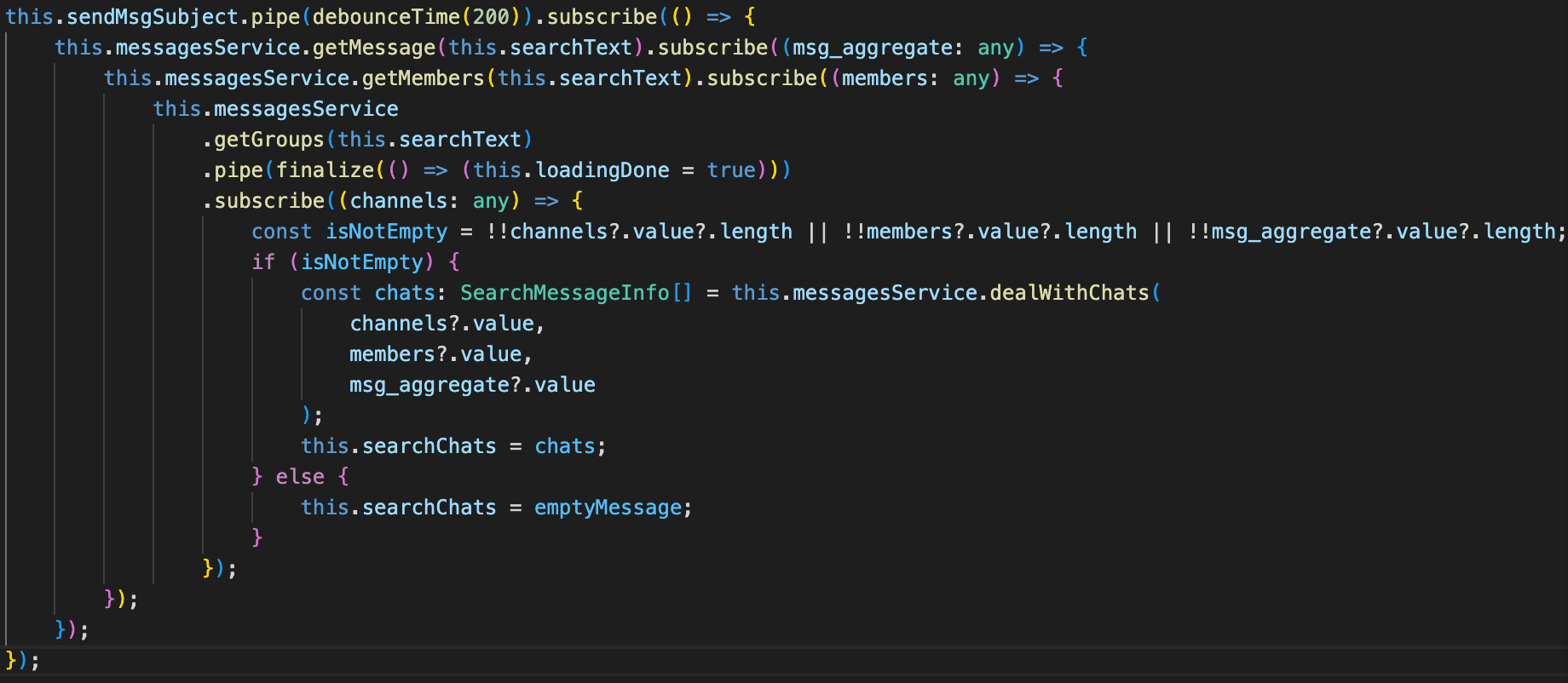 其中主要的问题就是订阅层层嵌套,看起来非常乱,也没有一些搜索的优化。