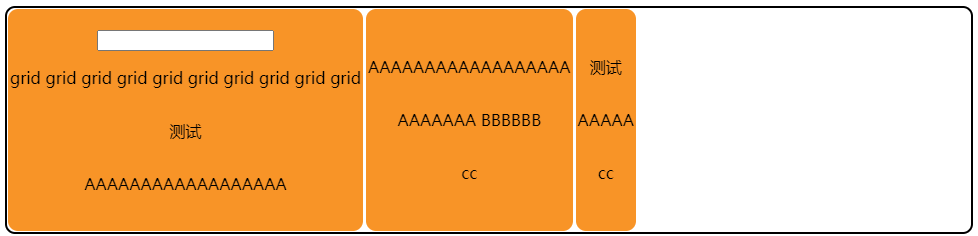 auto 关键字,作为最大值,等同于 max-content。作为最小值,它代表占据网格轨道的网格项目的最小尺寸的最大值 (如同min-width/min-height所指定的))。