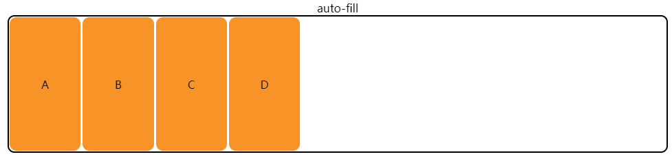 auto-fill: 填充尽可能多的列。因此,只要新列可以容纳,它就会创建隐式列,因为它试图用尽可能多的列填充行。新添加的列可以也可能是空的,但它们仍将占据行中的指定空间。